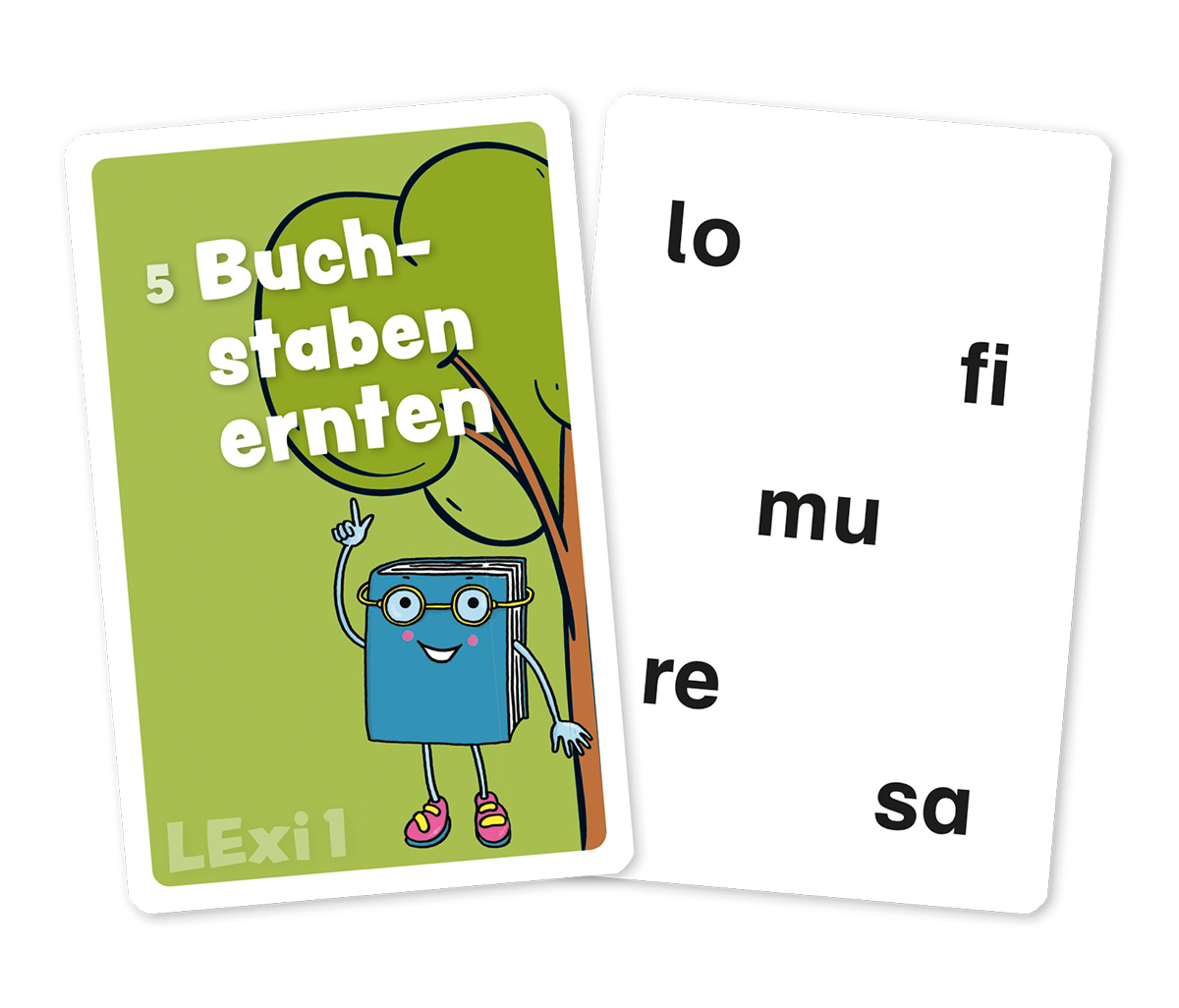 DUO: Dieses modulübergreifend einsetzbare Spiel ist dem beliebten Kartenspiel „Uno“ nachempfunden, verläuft nach den gleichen Regeln und zielt darauf ab, die häufigsten Buchstabenformen visuell und in Kombination mit den zugehörigen Lauten abzuspeichern. DUO kann zum einen mit Vorschulkindern gespielt werden, um eine Sensibilität für die Buchstabenformen zu schaffen, ermöglicht aber auch bei älteren Kindern dadurch, dass diese beim Ablagen von Karten jeweils schnell die Laute benennen müssen, eine ständige Wiederholung der Graphem-Phonem-Korrespondenzen. DUO ist in vier verschiedenen Varianten mit steigendem Schwierigkeitsgrad spielbar.