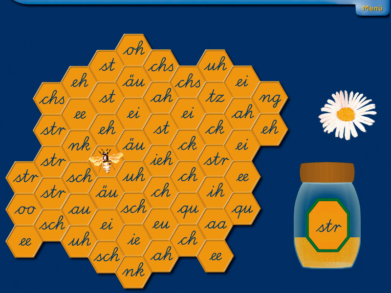 12 unabhängige Lernspiele fördern und behandeln die Raum-Lage-Wahrnehmung, Buchstabenidentifikation, Lautanalyse- und -syntheseprozesse, phonologische Prozesse und Silbenstrukturprozesse.