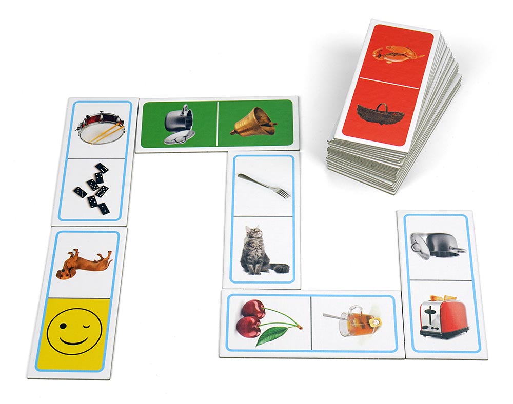 Ein Spielformat, das Elemente der bekannten Spiele Domino und UNO gewitzt miteinander kombiniert und Kinder spielerisch ähnlich klingende Laute unterscheiden lässt, die korrekte Aussprache und den Wortschatz trainiert.