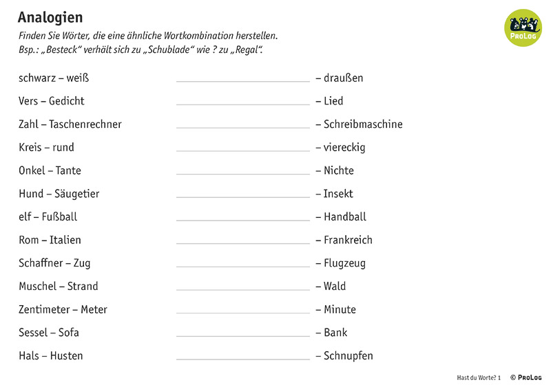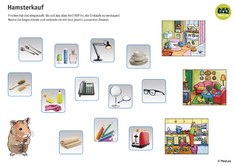 Für die kreative Arbeit ist zusätzlich die ProLog-Bastelstube enthalten. Mit den hier vorliegenden Blanko-Vorlagen sowie zahlreichen Illustrationen und Fotos können Übungen frei gestaltet werden. Auch die mitgelieferten Wimmelbilder und Blanko-Spielpläne können flexibel genutzt werden.