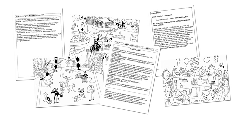 Sammlung von Therapievorschlägen, Übungsmaterial und Elternanleitungen mit 393 Seiten, ca. 100 schwarz-weiß Illustrationen, im stabilen Ordner