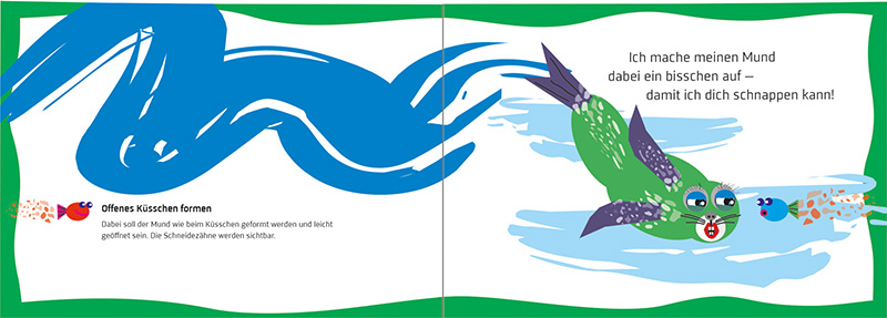 "Schau mal! Ich kann auch einen Fischmund machen, dann sehe ich aus wie du!" - Die Geschichte von Seehund und Fischchen unterstützt spielerisch und dennoch gezielt die mundmotorische Leistungsfähigkeit für eine korrekte Lautbildung, ein unauffälliges Schluckmuster, konstanten Mundschluss und die Nasenatmung. Neben der professionellen Anwendung in Logopädie und Sprachtherapie eignet sich das Buch durch seine Erzählform, seine originellen Bilder und Erläuterungen ebenso gut für die Anwendung in Kindergärten und zu Hause.