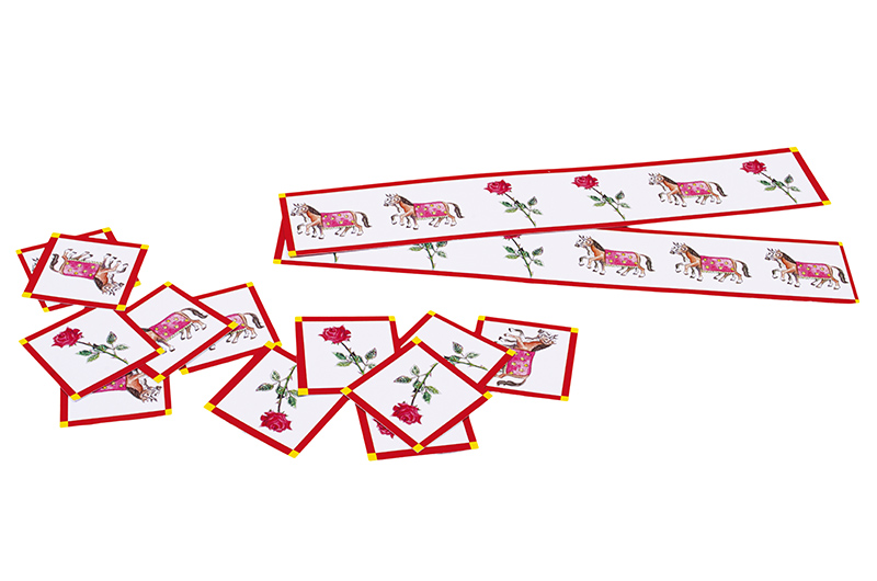 40 Spielstreifen, 40 Einzelkärtchenstreifen, 20 Sortiertütchen