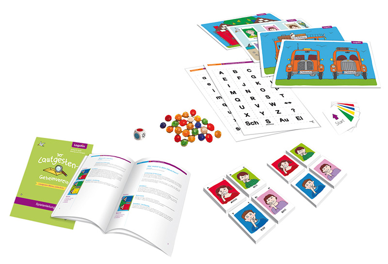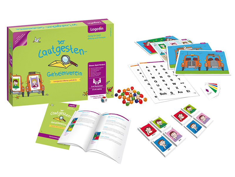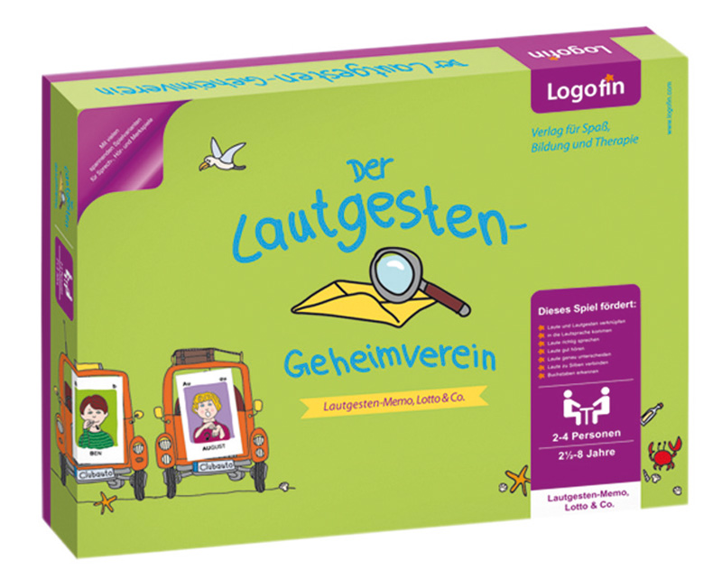 Das Lautgesten-Memo, Lotto & Co. ist ein eigenständiges Lernspiel aus der Reihe „Der Lautgesten-Geheimverein“, das die anderen Produkte der Reihe hervorragend ergänzt, aber auch ohne diese eingesetzt werden kann. Es ermöglicht insbesondere eine Intensivierung der Lernstufen 1 und 2 aus dem Lautgesten-Geheimverein LGGV. Dieses Spiel fördert den Sprechlernprozess: Laute genau hören, unterscheiden und richtig sprechen. Besonders gut geeignet ist es für die Arbeit mit Late Talkern und Kindern mit Down-Syndrom.