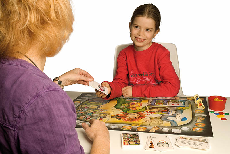 Passend zum Basisspiel aus der Reihe der Laut-Sets wird hier ein bestimmtes Set zu einem für die Sprachtherapie bestimmten Ziellaut angeboten. Zum Hexenküchen-Spielplan gibt es so ein Puzzleteil mit einem Regalmotiv. Je nach Ziellaut stehen auf den Regalbrettern kunterbunt durcheinander Gegenstände, die diesen Ziellaut in verschiedenen Wortpositionen anbieten. Zusätzlich gibt es einen Kartensatz mit 32 Bildkarten, die in ausgewogener Anzahl Wörter mit dem Ziellaut in An-, In- und Auslaut sowie in Konsonantenverbindungen präsentieren. Für die Textebene liegen weitere 20 Karten bei. Mithilfe dieses Kartensatzes wird der Ziellaut dann von der Laut- bis zur Textebene im Spiel trainiert. Der Schwierigkeitsgrad kann individuell angepasst und mit der Zeit erweitert werden. Für die Satzebene wurden konkrete Vorschläge ausgearbeitet. Und wenn schließlich die Textkarten ins Spiel kommen, wird mit dem frechen Raben der Hexe gedichtet, gereimt, gelacht und Spaß gemacht. Durch die wunderschönen Illustrationen und die in sich stimmige Spieldurchführung werden die Kinder motiviert, aktiv in der Hexenküche dabei zu sein.