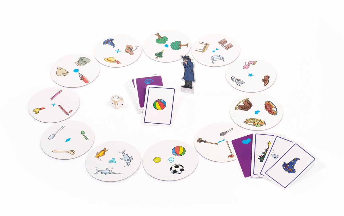 Das ausgeklügelte Spielformat ist klar strukturiert, findig und effektiv: Auf Spielkarten sind Bildmotive abgebildet. Sie sollen erraten werden. Dazu erwürfelt der Detektiv-Spieler, wie oft er raten darf, was auf der Spielkarte des Mitspielers zu sehen ist. Auf ausgelegten runden Scheiben werden dazu mehrere dieser Bildmotive zur Auswahl angeboten. Beim Raten wird die gewünschte Kasusbildung indirekt eingefordert. Die Spiele trainieren zusätzlich die Merkfähigkeit, Aufmerksamkeit und Konzentration, den Wortschatz und syntaktische Fähigkeiten.