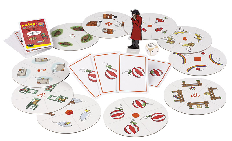 Immer zwei Präpositionen mit zwei Aktören werden im Kontrast angeboten, um die genaue Positionsbeschreibung spielerisch zu provozieren. Der Schwierigkeitsgrad kann durch die Auswahl der gewünschten Präpositionen variiert und das Material entsprechend reduziert werden. Zudem können die Inhalte beider Spiele miteinander gemischt werden. Die ideenreichen Zeichnungen sind präzise und anschaulich und das typische Spielprinzip der Serie sehr motivierend. Neben den Präpositionen werden auch Wortschatz, Kasusbildung und einfache Satzstrukturen geübt.