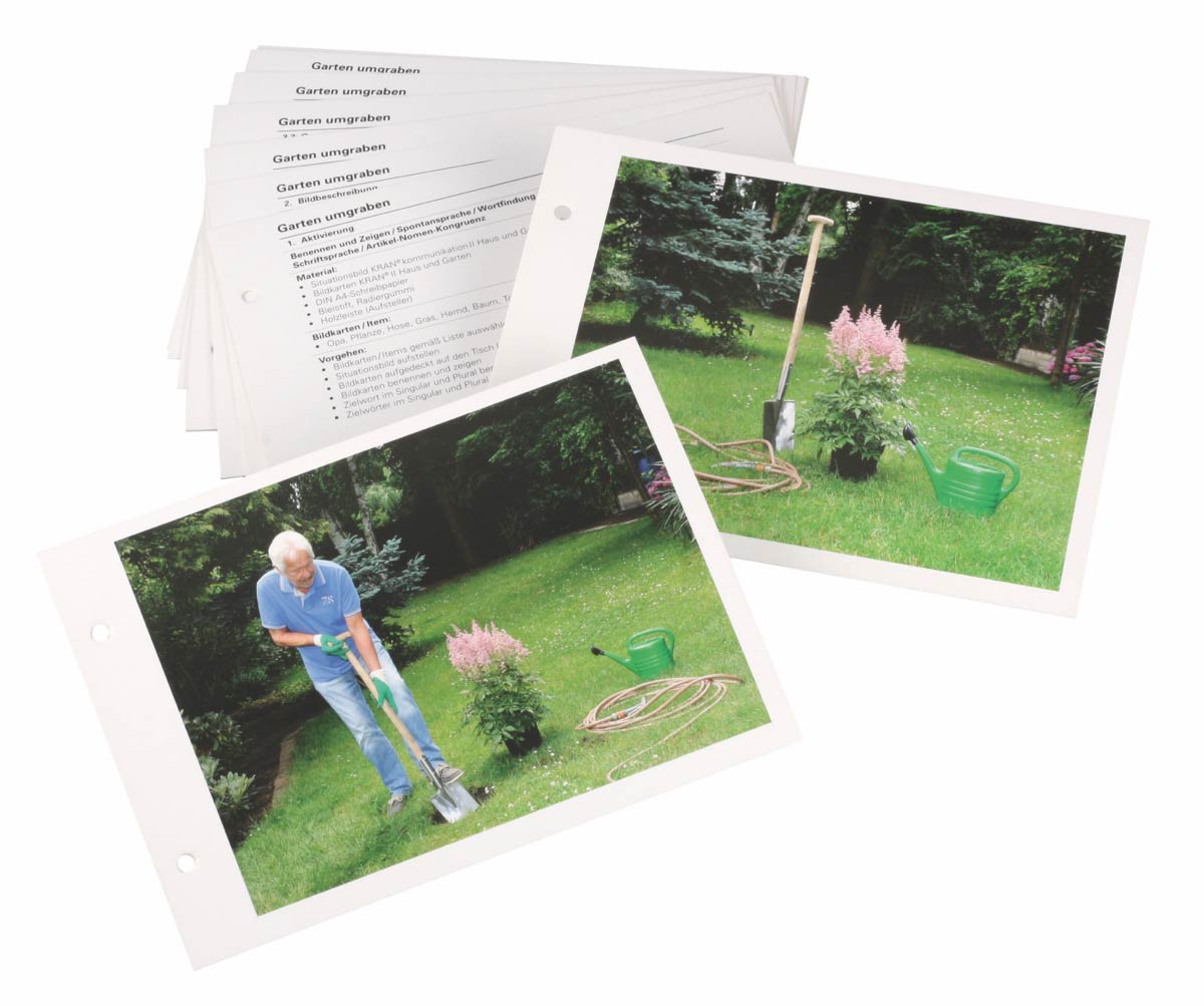 Manual, 20 A5-Fotos, pro Foto 10 Kommunikations-Karteikarten mit Aufgabenstellungen und Übungsanleitungen, Screening- und Fragebogen, im Ordner