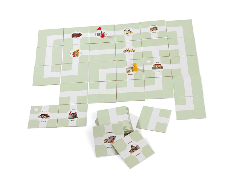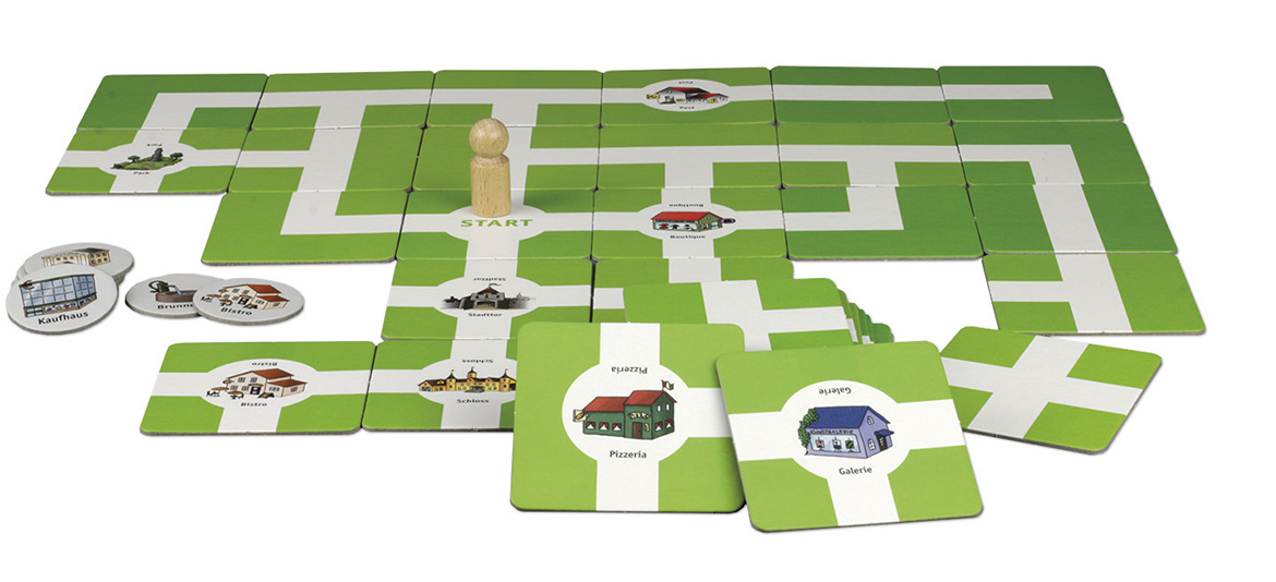 Das Stadtplanspiel ist ein Aktivierungsspiel zur Förderung des räumlichen Denkens und der planerischen Fähigkeiten. Aus einzelnen Wegekarten setzen die TeilnehmerInnen einen Stadtplan zusammen. Zwischen zufällig ausgewählten Zielpositionen sollen dabei möglichst kurze Wegstrecken geplant und mit der Spielfigur zurückgelegt werden.