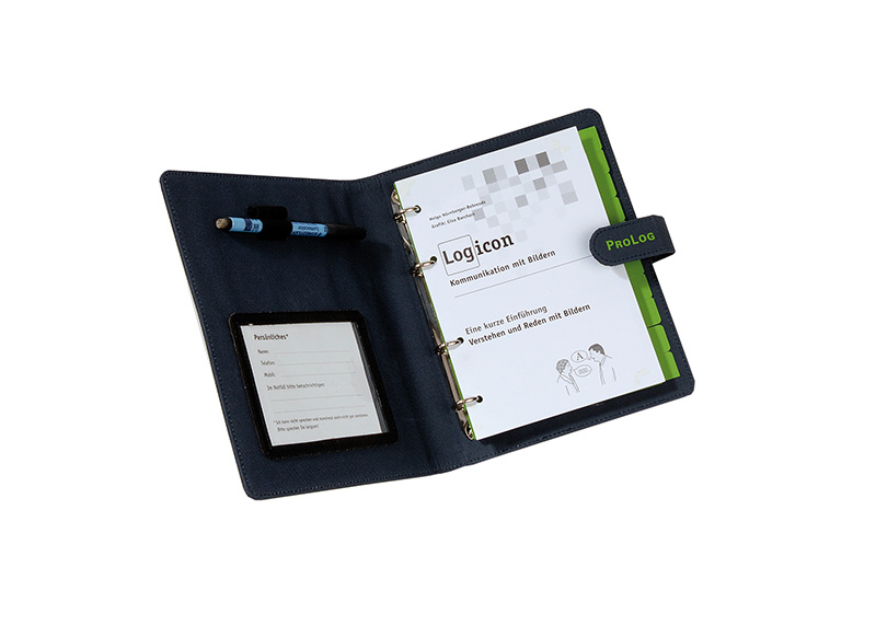 Therapeuten-Manual, Diagnostikbogen, 23 Seiten mit ca. 450 Bild- und Wortmaterialien als Klebeetiketten; A5-Patientenmappe mit 10 Registern, 34 Blanko-Folienseiten für die Klebeetiketten, 4 Landkarten, Folienstift, Kugelschreiber; im Ordner