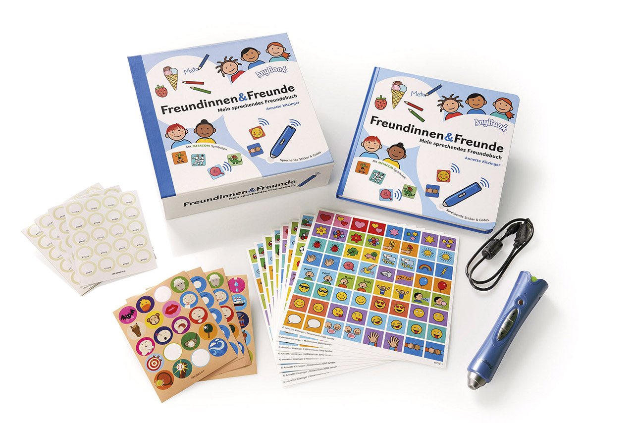 Das Album bietet durch die Vertonung mit dem Anybook Audiostift und durch das METACOM-Symbolsystem unterschiedliche Möglichkeiten der Unterstützten Kommunikation. So eignet sich das Erinnerungsalbum nicht nur für Kindergartenkinder, sondern auch für Menschen mit fehlender oder eingeschränkter Lautsprache sowie für Kinder mit geringen Deutschkenntnissen. Geboten wird eine durchgängige Gestaltung mit METACOM Symbolen, Zahlreiche Anybook-Audiocodes für eigene Aufnahmen, Geburtstagskalender, 512 sprechende Aufkleber auf 8 Stickerbögen, Hochwertige Aufbewahrungs- und Transportbox