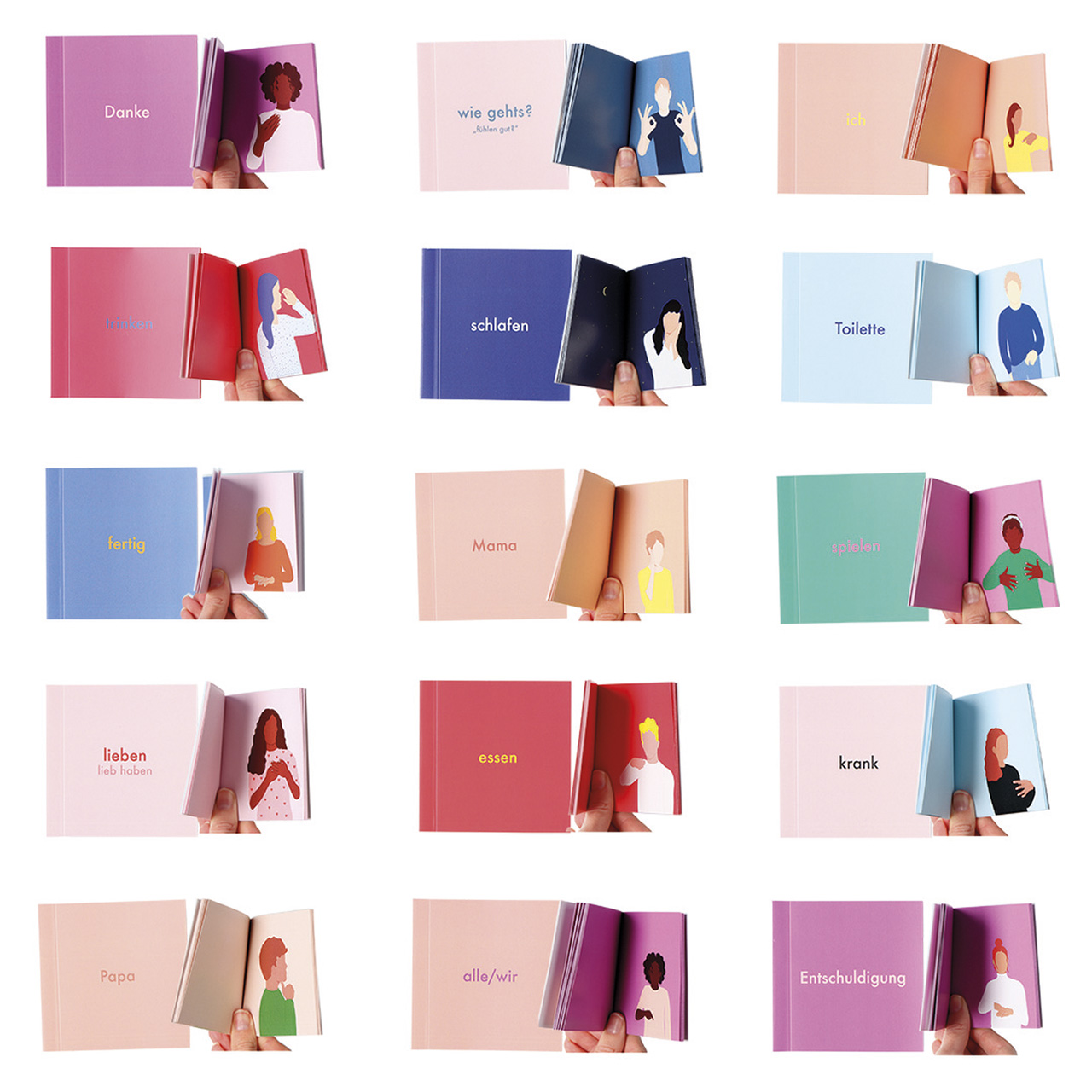 Das 100er Set besteht aus following Gebärden-Daumenkinos:
