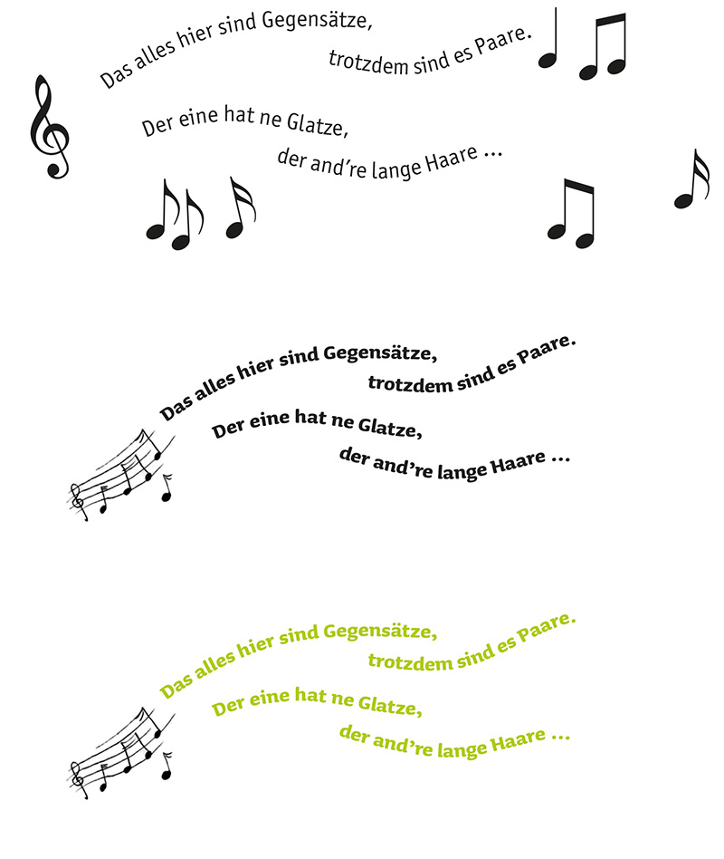 Mit Gesang und Klang werden bestimmte Laute bzw. lautliche Oppositionen zugrunde gelegt, um Stellenwert und Funktion der einzelnen Laute zu verdeutlichen: